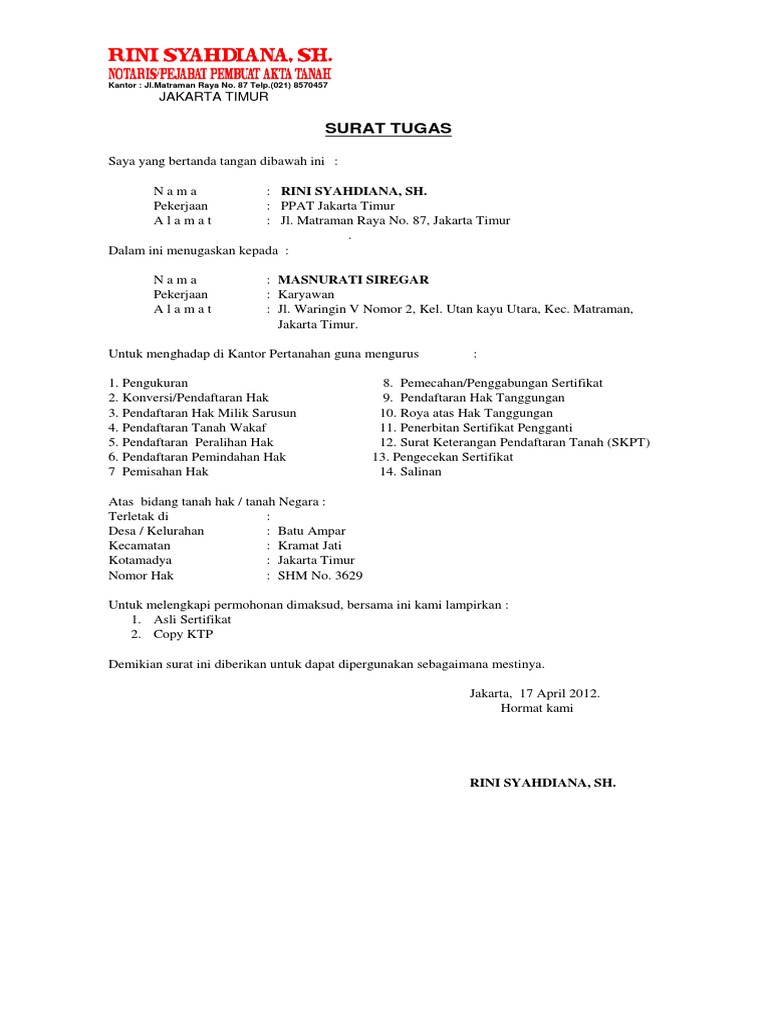 Cara Membuat Surat Keterangan Ahli Waris Beserta Contohnya Rumah123 Com from d3p0bla3numw14.cloudfront.net Contoh surat kuasa tanah yang baik dan benar. Contoh surat kuasa dinas pengurusan website. Kelemahan dari surat kuasa tanah adalah tidak adanya batas waktu tertentu kepada orang yang ditunjuk dengan tujuan mengakhiri masa pemberian. Untuk melakukan pengurusan administrasi penyambungan baru listrik di pt. Akan tetapi proses jual beli tersebut harus dilakukan sesuai dengan peraturan yang ada. Saat membuat surat kuasa, jangan lupa juga untuk menuliskan orang yang diberikan kuasa, tulisan dengan jelas nama lengkap orang yang diberikan kuasa, nomor. Semoga saja dapat berguna dan membantu anda yang membutuhkan. Jika kita memiliki harta benda, maka sangat penting bagi kita untuk menjaga dan merawat harta tersebut, seperti harta tanah contohnya.