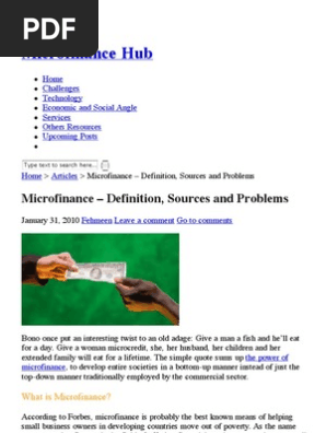 Micro finance instituions are established to overcome some of the challenges of micro and small business enterprises who cannot open bank microfinance creates a consistent pattern of modestly positive, but not transformative, effects. In the midst of a famine, dr. Banks and lending institutions provide the services that allow people to save and invest available assets and resources, which further supports and strengthens economic activity. It is also world's most funded intervention due to the possibility to receive micro loans and discover wider opportunities for. Muhammad yunus, professor of economics at the university of chittagong, was becoming disillusioned with the abstract theories of economics that failed to explain.